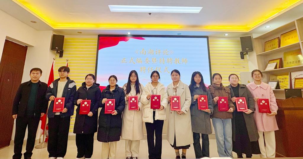 勇担使命,续写新篇。12月9日下午,马克思主义学院在社科楼323会议室举行《南湖评论》2025年正式编委暨特聘教师聘任仪式。学院党委副书记王超、特聘教师代表、《南湖评论》正式编委与实习编委、优秀作者代表等共同参加仪式,仪式由责编刘畅主持。